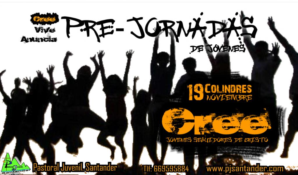 La Delegación de Juventud de la Diócesis de Santander organiza las Prejornadas de jóvenes 2011 el sábado 19 de noviembre en Colindres, bajo el lema Cree, jóvenes seguidores de Cristo. A continuación os detallamos información sobre el programa de actividades y el coste de la actividad: